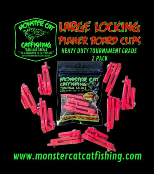 Tournament proven and built for abuse, Monster Cat Large Locking Planer Board Clips are the gear you trust when the stakes are high and you’re out there chasing them giant Monster Cats.